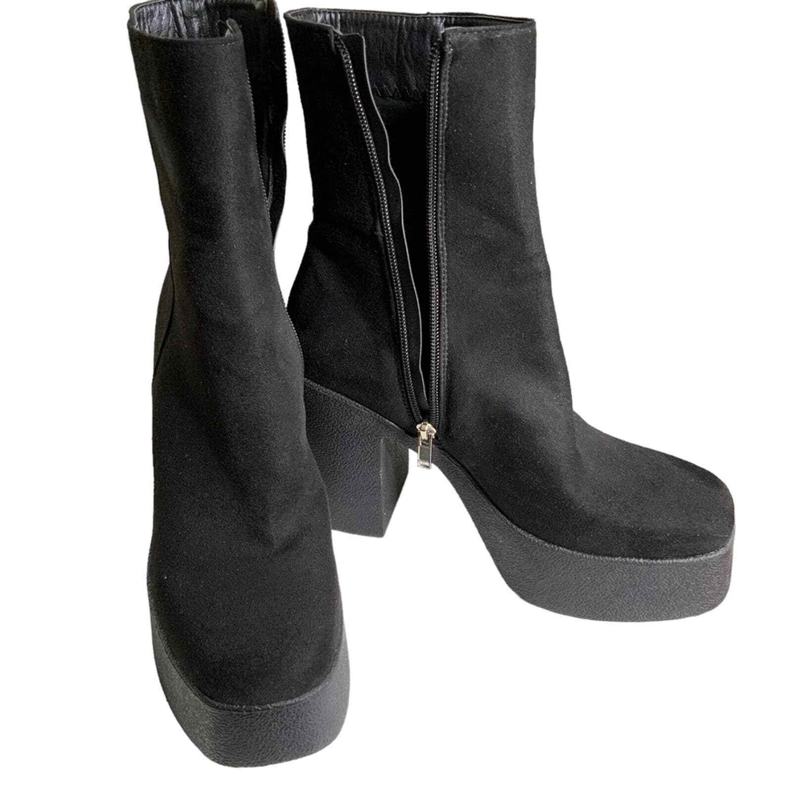 Lamoda black platform boots with side zipper closure. Round toe design. Silver zipper. Block heels. Size 8Heel height: approximately 4”Shaft height: approximately 7”Shaft circumference: approximately 9.5”Platform height: approximately 1.5”